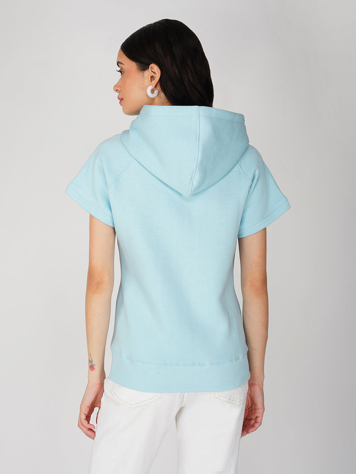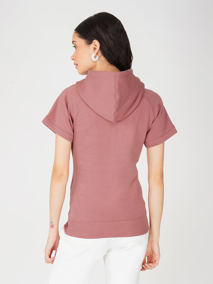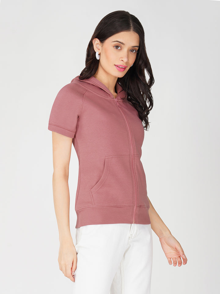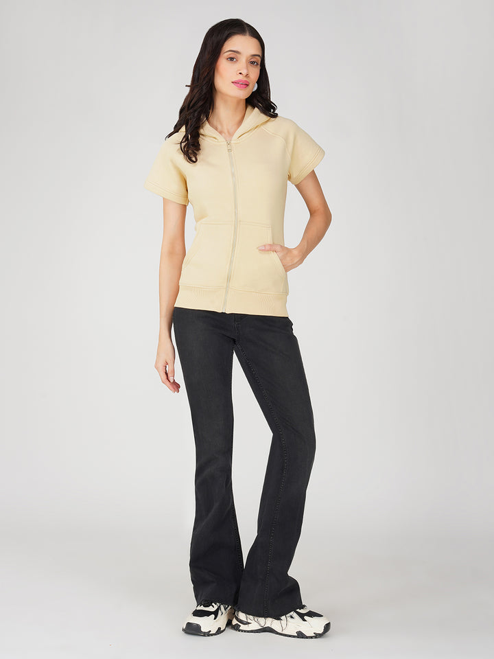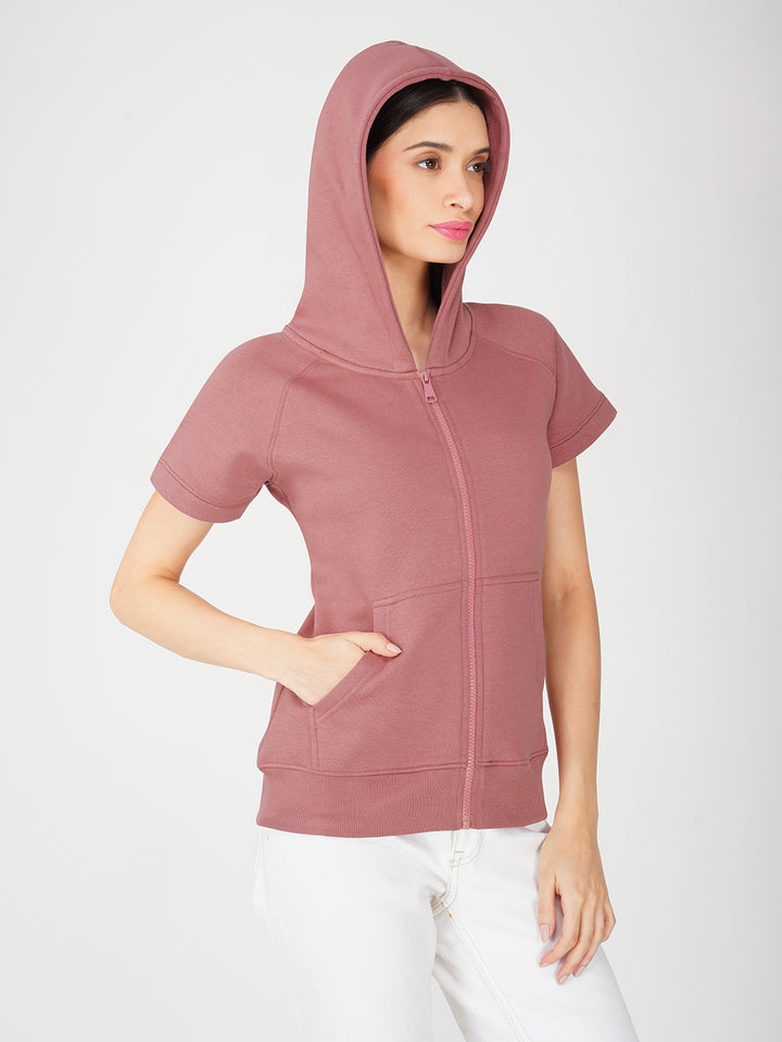 Trendy Full Zip Jacket for Women - Half Sleeve and Side Pocket with Hood
