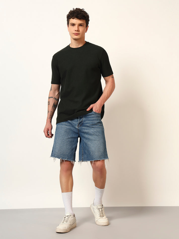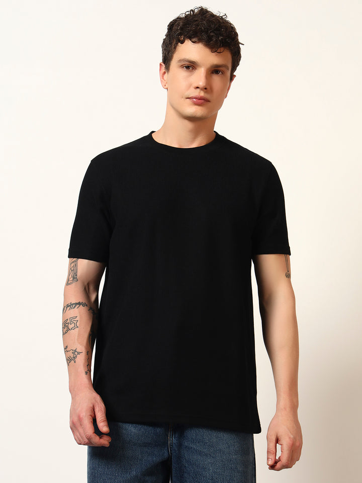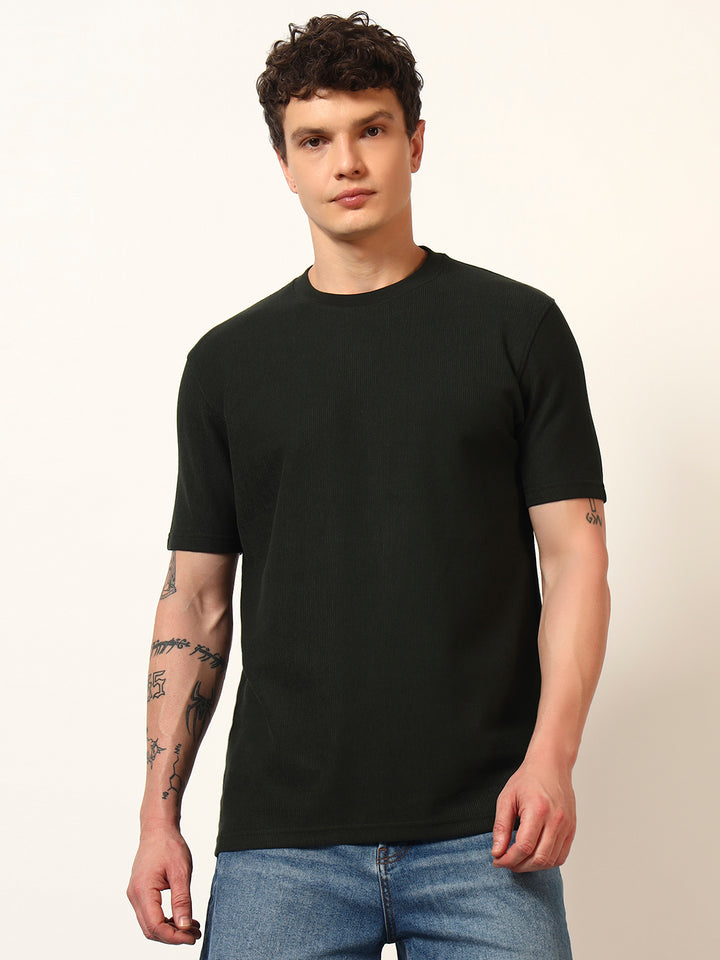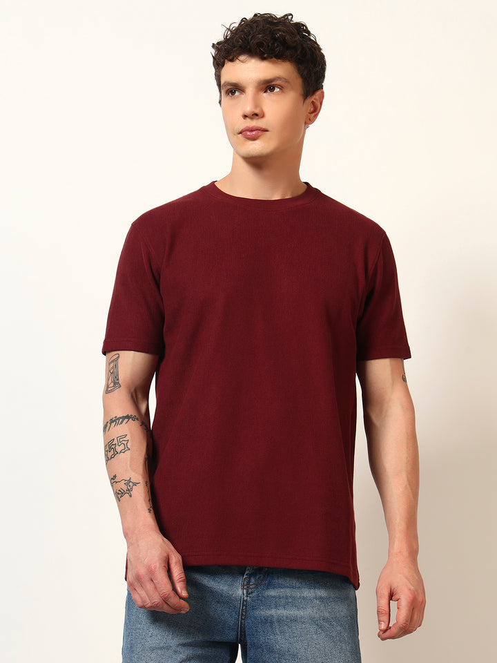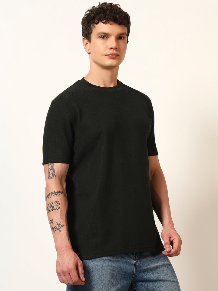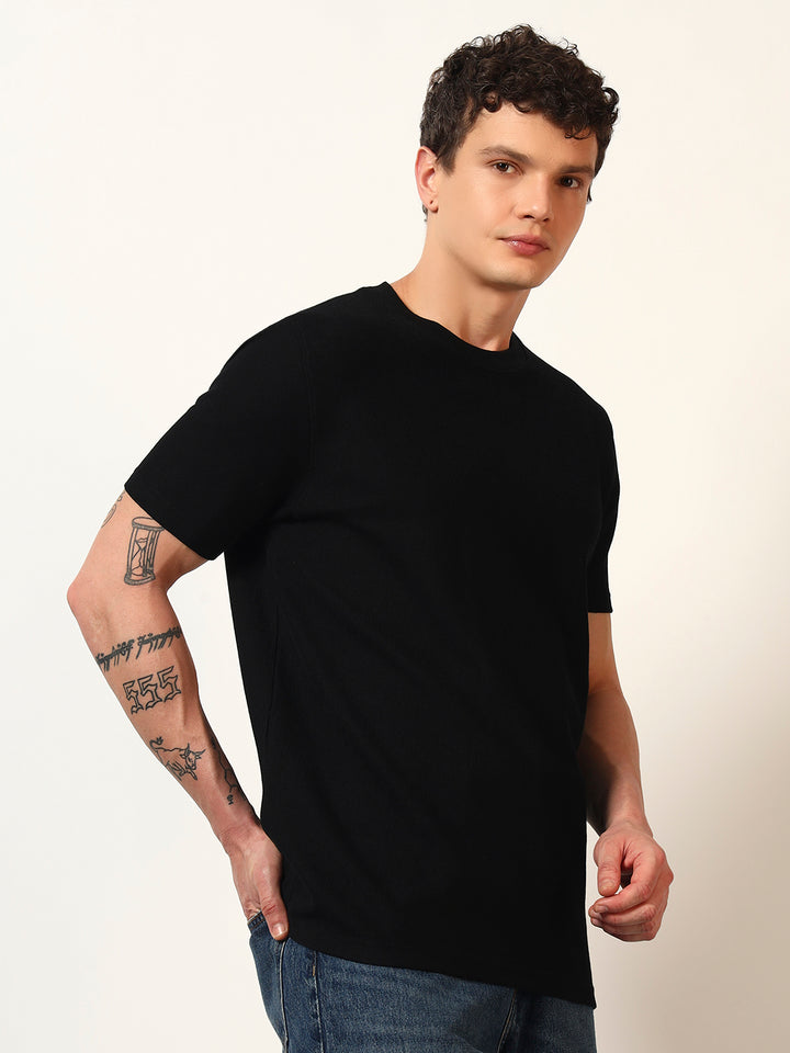 Men’s Textured Loose Fit T-Shirt – Classic Crew Neck Comfort Fit