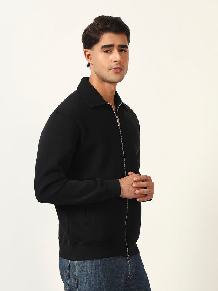 Upgrade your casual wardrobe with this men's full zipper collared jacket, designed for both style and comfort. Crafted from premium cotton-blend fabric, it offers a soft feel and long-lasting durability. The full front zip closure ensures easy wear, while the ribbed cuffs and hem provide a snug fit. Featuring a smart shirt-style collar and practical side pockets, this versatile jacket pairs perfectly with jeans or joggers for any casual outing.