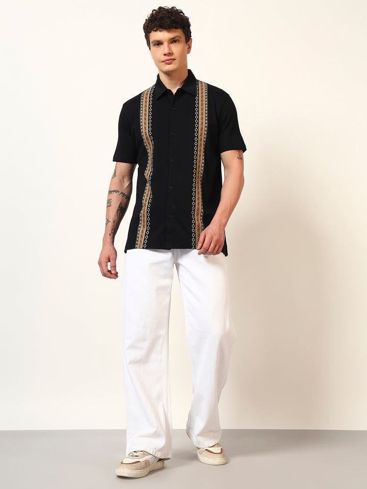 Add a touch of effortless charm to your summer wardrobe with this Men's Printed Shirt, designed for laid-back days and stylish getaways. Featuring bold vertical prints and a comfortable short-sleeve design, this shirt is the perfect choice for casual outings or vacation looks.