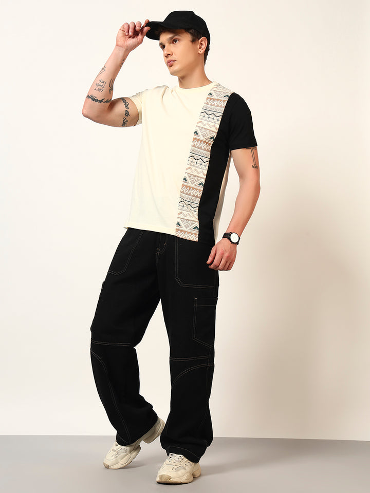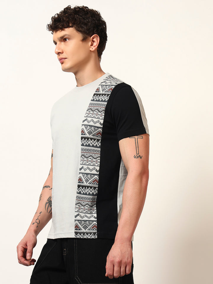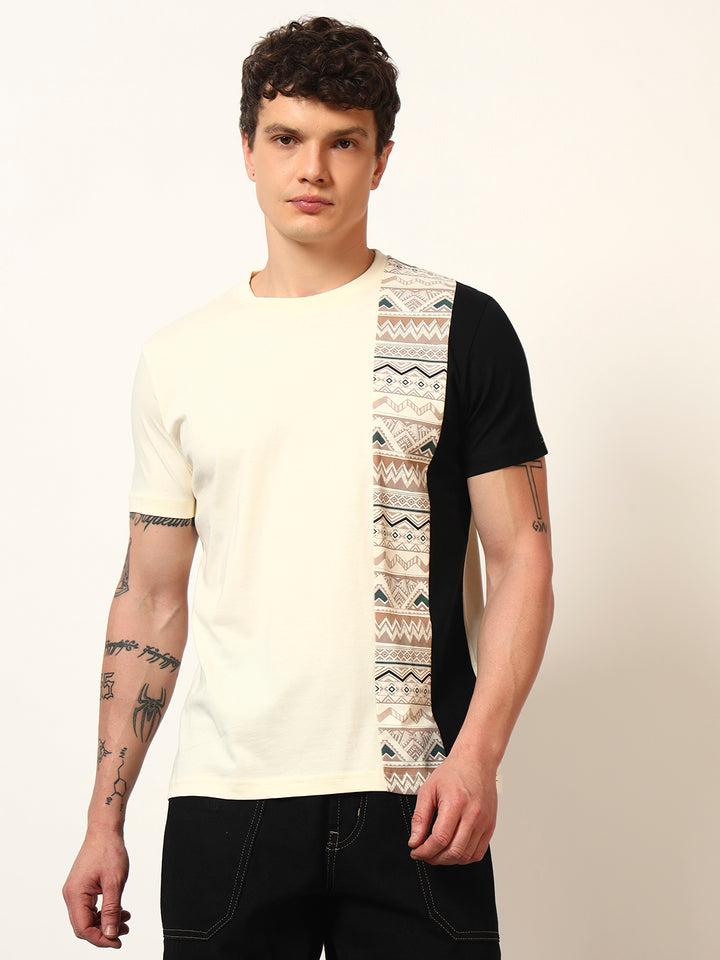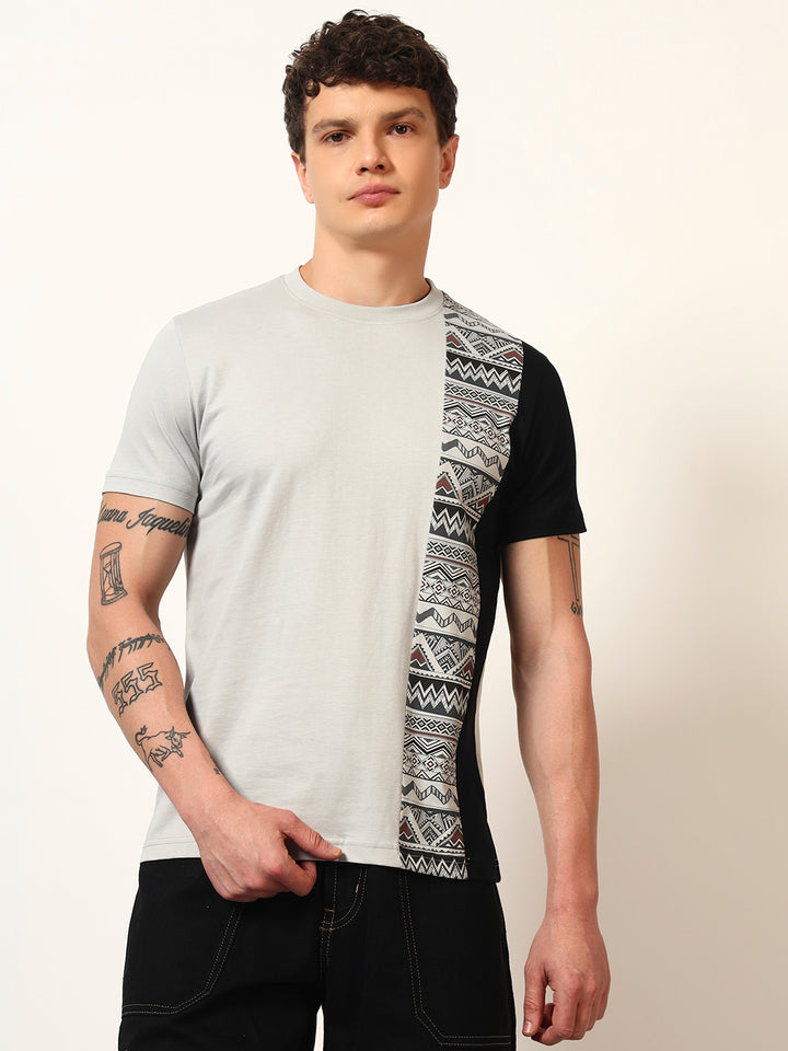 Make a statement with this Men's Tribal Print T-Shirt, designed to add a bold, modern twist to your everyday style. Featuring a unique tribal-inspired panel and sleek color-blocked design, this tee offers a perfect balance of comfort and contemporary fashion.