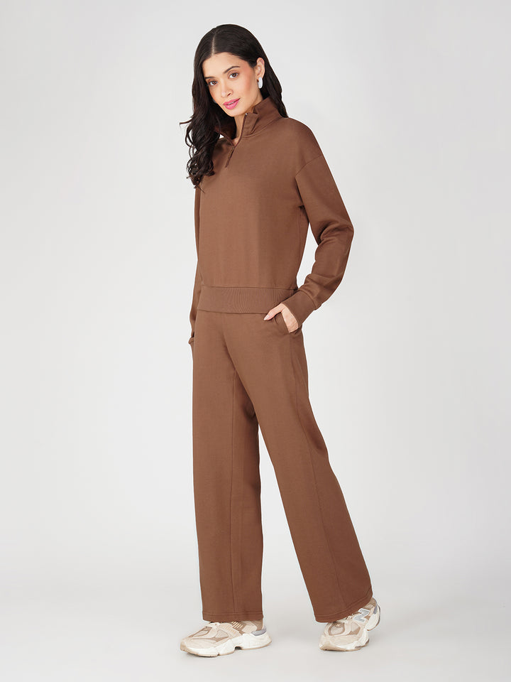 Elevate your casual wardrobe with this stylish half zipper sweatshirt paired with full-length bottoms. Designed for all-day comfort, this coord set is made from premium soft fabric that feels light yet cozy. The half-zip sweatshirt offers a modern sporty vibe, while the relaxed-fit full-length bottoms ensure ease of movement and a flattering silhouette. Perfect for lounging, travel, or casual outings, this versatile set combines comfort with minimal chic style. Pair with sneakers for a laid-back look or layer with a jacket for added warmth. A must-have essential for everyday wear.