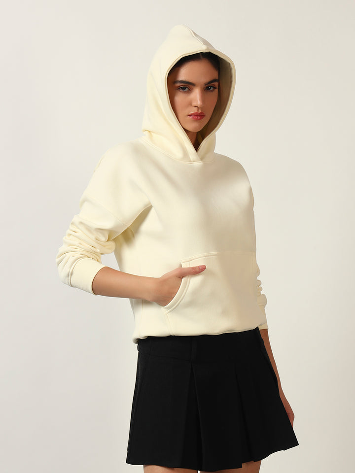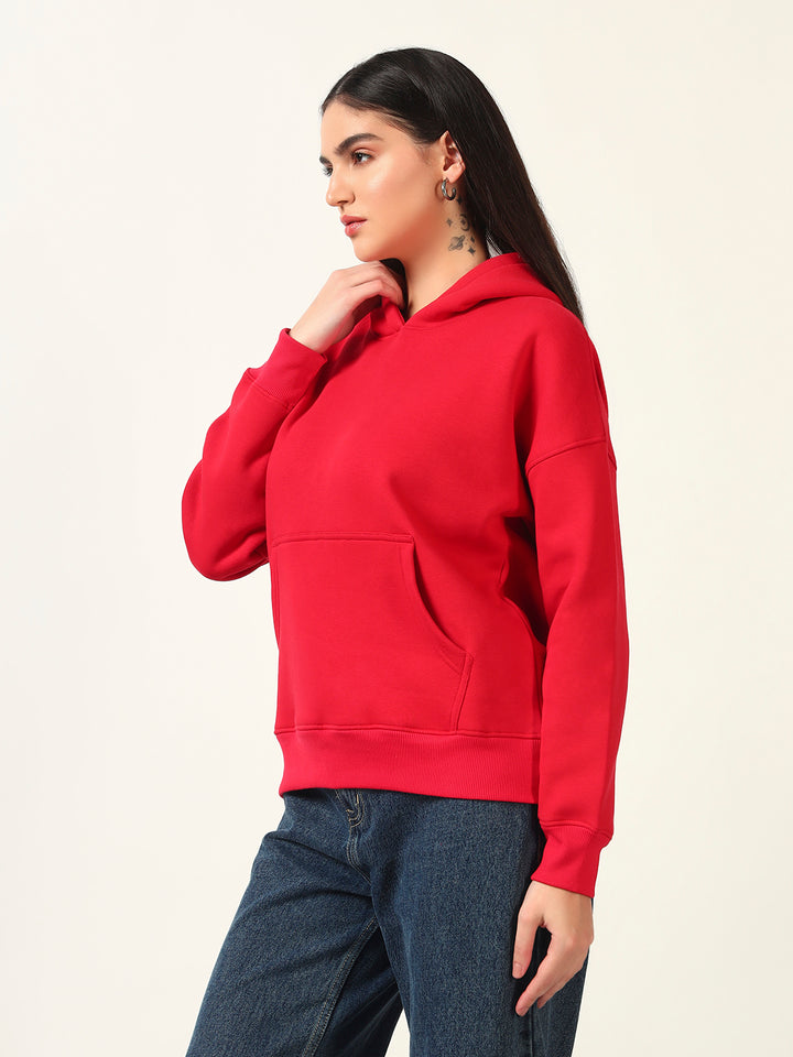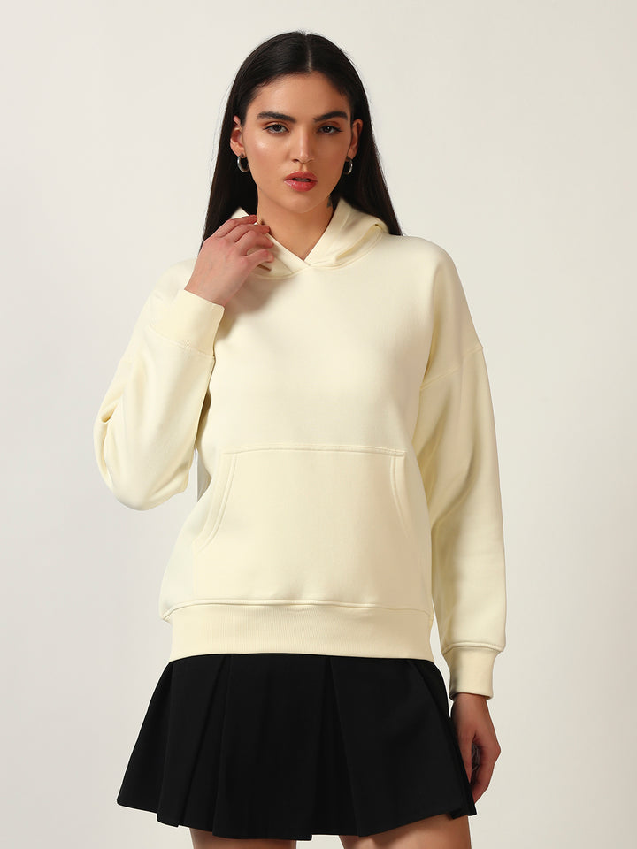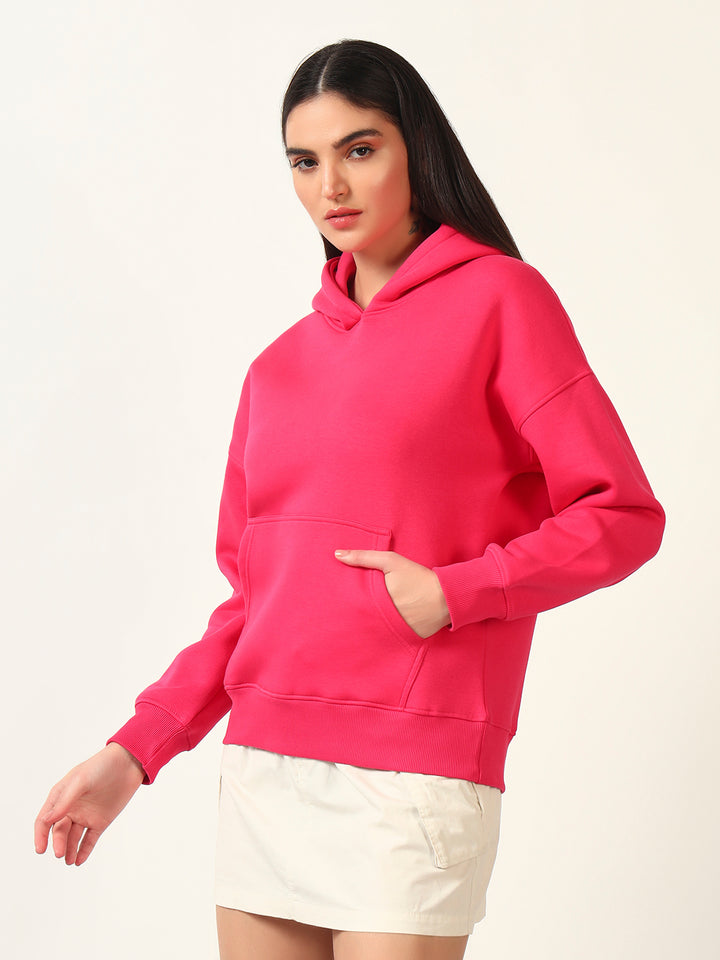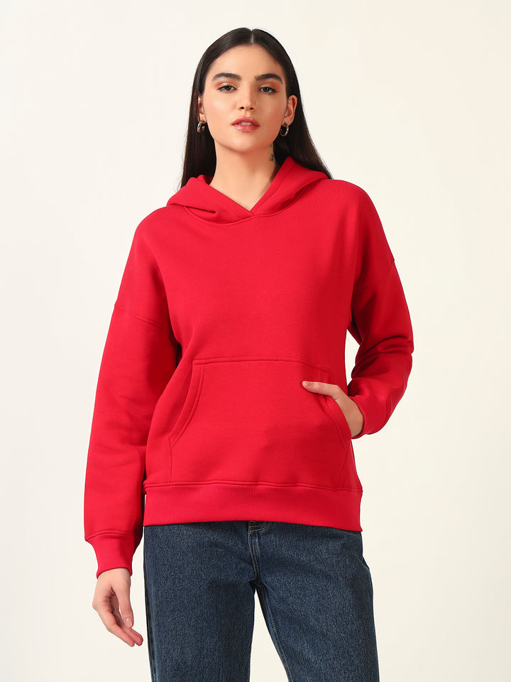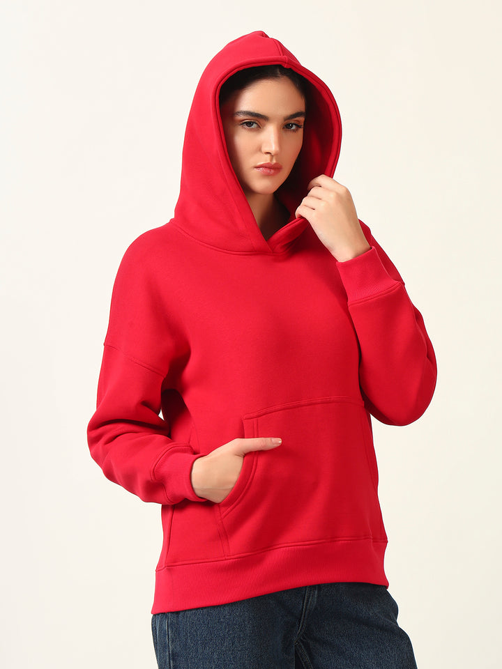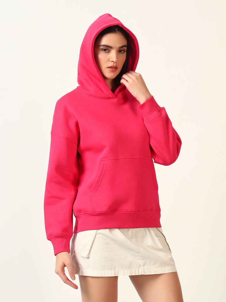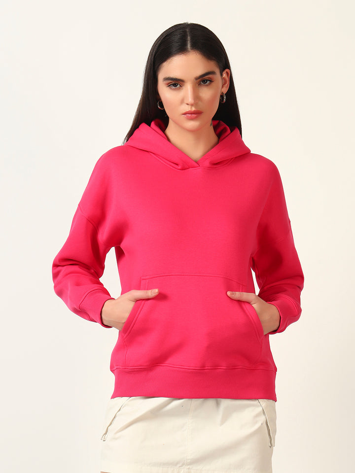 Elevate your casual style with this women’s solid hoodie, designed for comfort and versatility. Crafted from soft, breathable fabric, it offers a relaxed fit with ribbed cuffs and hem for a flattering silhouette. The spacious kangaroo pocket and cozy hood add a functional yet trendy touch — perfect for layering on cool days.